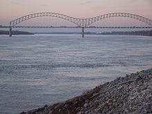 Four railroad and highway bridges cross the Mississippi River at Memphis. In order of their opening years, these are the Frisco Bridge (1892, single-track rail), the Harahan Bridge (1916, a road-rail bridge until 1949, currently carries double-track rail), the Memphis-Arkansas Memorial Bridge (Highway, 1949; later incorporated into Interstate 55), and the Hernando de Soto Bridge (Interstate 40, 1973).